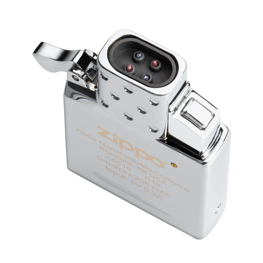 Windfester Lichtbogen-Einsatz für einfache Bedienung durch doppelten Knopfdruck. Die 200 mAh Batterie ist innerhalb 1h vollständig geladen und hält für 300 Zündungen. Passend für alle herkömmlichen Zippo Cases, ausser Slim- oder 1935 Replica Cases. 10 Sekunden Sicherheitsfunktion. Behält das charakteristische Zippo Klick-Geräusch.